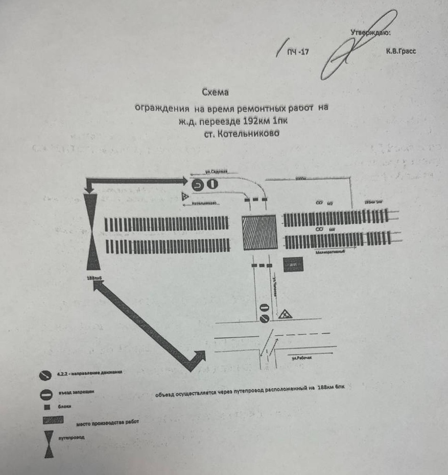 ВНИМАНИЕ! Сарептская дистанция пути уведомляет, что закрывается движение автотранспорта через ж.д переезд 192 км 1 пк ст. Котельниково с 09 ч 00 ч до 16 ч 00 мин 26.02.2025 г., для проведения путевых работ, с целью обеспечения безопасности движения поездов.Движение автотранспорта будет осуществляться через путепровод, расположенный на 188 км 6пк, схема прилагается.