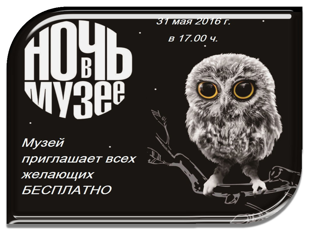 В рамках празднования Международного дня музеев в МКУК «Историко-краеведческий музей» города Котельниково, 31 мая 2016 года четвертый год подряд пройдет акция «Ночь в музее». Свою работу музей начнет в обычном режиме с 08.00. до 17.00 (тематические экскурсии), а с 17.00 развернется необычная часть акции (викторины, игровые программы и многое другое).