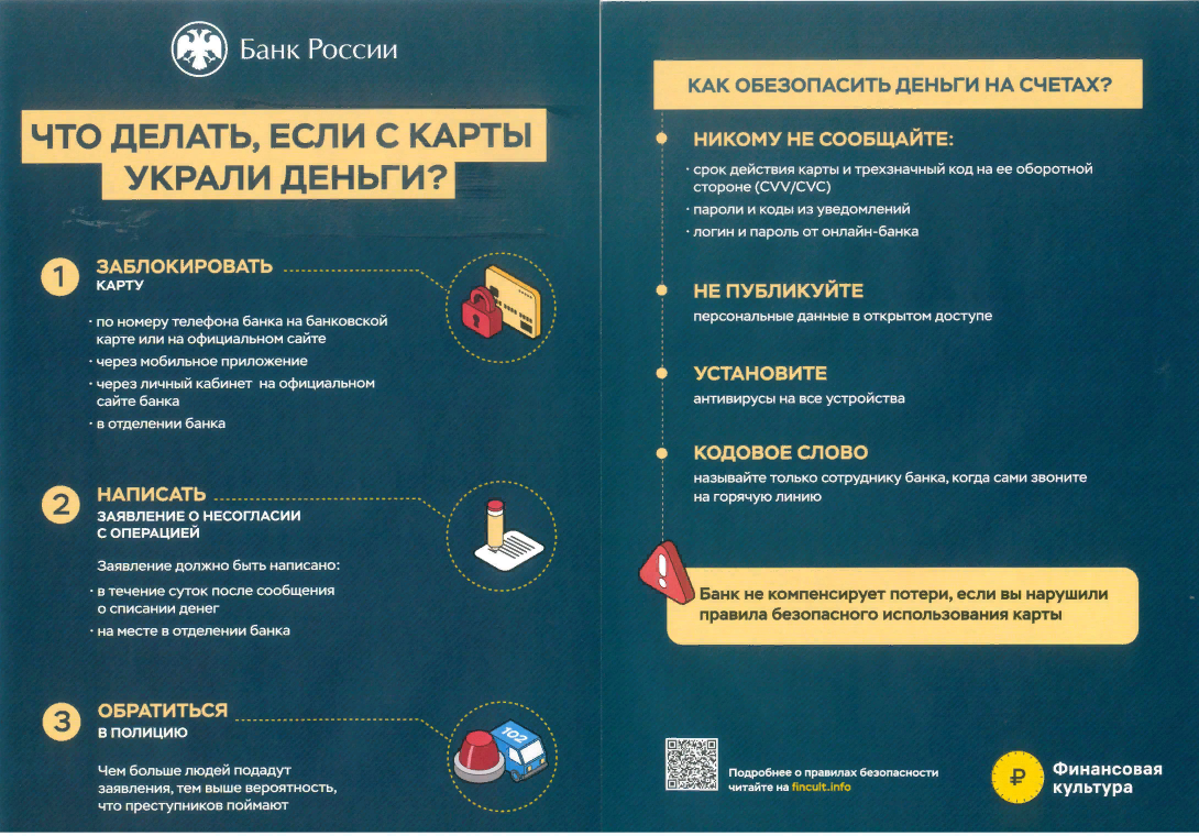 Уважаемые граждане!ГУ МВД России по Волгоградской области предупреждает «Осторожно мошенники!»В настоящее время на территории Волгоградской области продолжают регистрироваться случаи краж денежных средств с банковских счетов и мошенничеств, совершенных с использованием средств связи и сети Интернет. Каждое 3-е преступление на территории региона совершается с использованием информационно-телекоммуникационных технологий.Чтобы не стать жертвой мошенников, а также не лишиться своих денежных средств, обратите внимание на основные способы и схемы совершения рассматриваемого вида преступлений. Обратите внимание, что мошенники модернизируют, усовершенствуют и видоизменяют данные способы, для того, чтоб ввести Вас в заблуждение и завладеть денежными средствами. Отнеситесь к приведенному материалу ниже с особым вниманием. Поделитесь информацией со своими близкими и родственниками. Не дайте себя обмануть. Отличительной чертой совершения IT-преступлений является их совершение с использованием социальной инженерии, где работает человеческий фактор. Злоумышленник получает всю необходимую информацию от пользователя путем введения его в заблуждение. Итак, наиболее распространёнными способами IT-преступлений являются следующие схемы: 1. Телефонное мошенничество под предлогом звонка сотрудника банка. Потерпевшему поступает звонок, где собеседник представляется сотрудником безопасности Банка, сообщает информацию о том, что якобы с банковской карты потерпевшего фиксировались попытки кражи денежных средств злоумышленниками, или же сообщает выдуманную операцию перевода денежных средств с банковской карты и называет вымышленные данные человека, в чей адрес якобы осуществлялся перевод. С целью предотвращения вымышленного перевода, потерпевшего вводят в заблуждение и ведут переговоры. В ходе разговора предупреждают о конфиденциальности и об уголовной ответственности за разглашение информации, полученной в процессе диалога с вымышленным сотрудником. Для введения в заблуждение и придания правдоподобности, мошенники могут высылать поддельные фотографии документов с удостоверениями, доверенностями и т.д., в подтверждение, что они действительно являются сотрудниками, например 2 Центрального банка Российской Федерации.1 Цель мошенников – вывести денежные средства на «безопасные счета», открытые якобы в ЦБ РФ. В действительности же, денежные средства поступают на счета, подконтрольные мошенникам. Схем данного вида преступления множество, а цель одна: завладеть денежными средствами, потерпевшего, заставить получить кредит в мобильном приложении банка или в отделении банка, а затем всю сумму перевести на подконтрольные мошенникам счета. Важно: мошенники могут просить установить сторонние приложения для удаленного доступа через мобильный телефон (Any Desk и Rust Desk), убедить Вас отправиться в ближайший банкомат и перевести денежные средства со всех банковских карт на «безопасные счета». Угрозы, запугивание, осуществление морального давления – это неотъемлемые инструмента преступника. Внимание: Настоящий сотрудник банка никогда не обратится к Вам с подобной просьбой! Не сообщайте свои личные данные, данные банковских карт, пин-код, трехзначный код на обороте банковской карты, поступившие пароли по смс-сообщению и т.д. Н