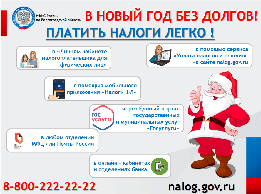 УПРАВЛЕНИЕ ФЕДЕРАЛЬНОЙ НАЛОГОВОЙ СЛУЖБЫ ПО ВОЛГОГРАДСКОЙ ОБЛАСТИПроверить и оплатить налоговую задолженность можно через Единый портал государственных и муниципальных услуг 1 декабря 2023 года истек срок уплаты налогов, указанных в направленных налогоплательщикам налоговых уведомлениях за 2022 год. Таким образом, начиная со 2 декабря 2023 года, неуплаченная сумма налога автоматически стала недоимкой, на которую ежедневно начисляются пени. Пользователи Единого портала государственных и муниципальных услуг могут проверить задолженность по налогам и при ее наличии оплатить в режиме онлайн. В том случае, если гражданин ранее не пользовался порталом Госуслуг, ему необходимо зарегистрироваться и подтвердить учетную запись. После того, как налогоплательщик прошел регистрацию на сайте, ему нужно открыть вкладку «Налоговая задолженность», далее нажать кнопку «Проверить», и система автоматически выдаст необходимую информацию. Наличие задолженности проверяется с помощью ИНН налогоплательщика, указанного в профиле. Чтобы более оперативно получать оповещения о долгах, можно установить мобильное приложение Госуслуги. Кроме того, узнать о задолженности и оплатить ее можно с помощью интернет - сервиса ФНС России «Личный кабинет налогоплательщика для физических лиц», а также в налоговых инспекциях региона. Обращаем внимание, что налоговыми органами взыскание задолженности осуществляется через службу судебных приставов, через работодателя, через банк. Судебный пристав в рамках совершения исполнительных действий вправе: - накладывать арест на имущество, в том числе денежные средства и ценные бумаги, изымать указанное имущество, передавать арестованное и изъятое имущество на хранение; - устанавливать временное ограничение на выезд должника за границу, а также запрет на совершение регистрационных действий. Взыскание осуществляется посредством удержания денежных средств со счетов должника, путем реализации арестованного имущества. Кроме того, после взыскания задолженности взымается исполнительный сбор в размере 7% от суммы задолженности, но не менее 1000 рублей. Во избежание этих неприятных ситуаций, УФНС России по Волгоградской области рекомендует гражданам контролировать свои расчеты с бюджетом, и при наличии задолженности самостоятельно производить уплату.