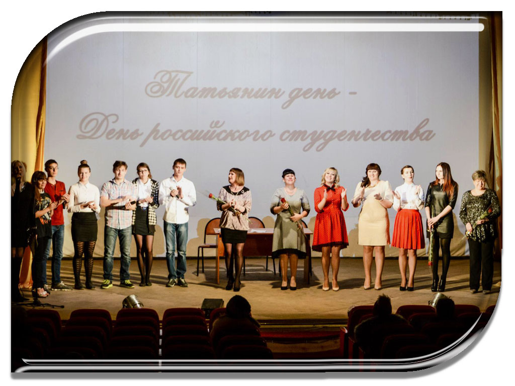 Мир не был бы таким ярким, если бы нас не окружали прекрасные Тани, Танечки, Танюши. В этот замечательный день звучали тёплые поздравления с именинами для всех Татьян присутствующих в зале. Какой же Татьянин день без Татьян? От имени Татьян нашего времени, со сцены, музыкальными номерами поздравляли наших студентов обладательницы этого царственного имени: Татьяна Жолобова, Татьяна Радченко и Татьяна Сапожникова.