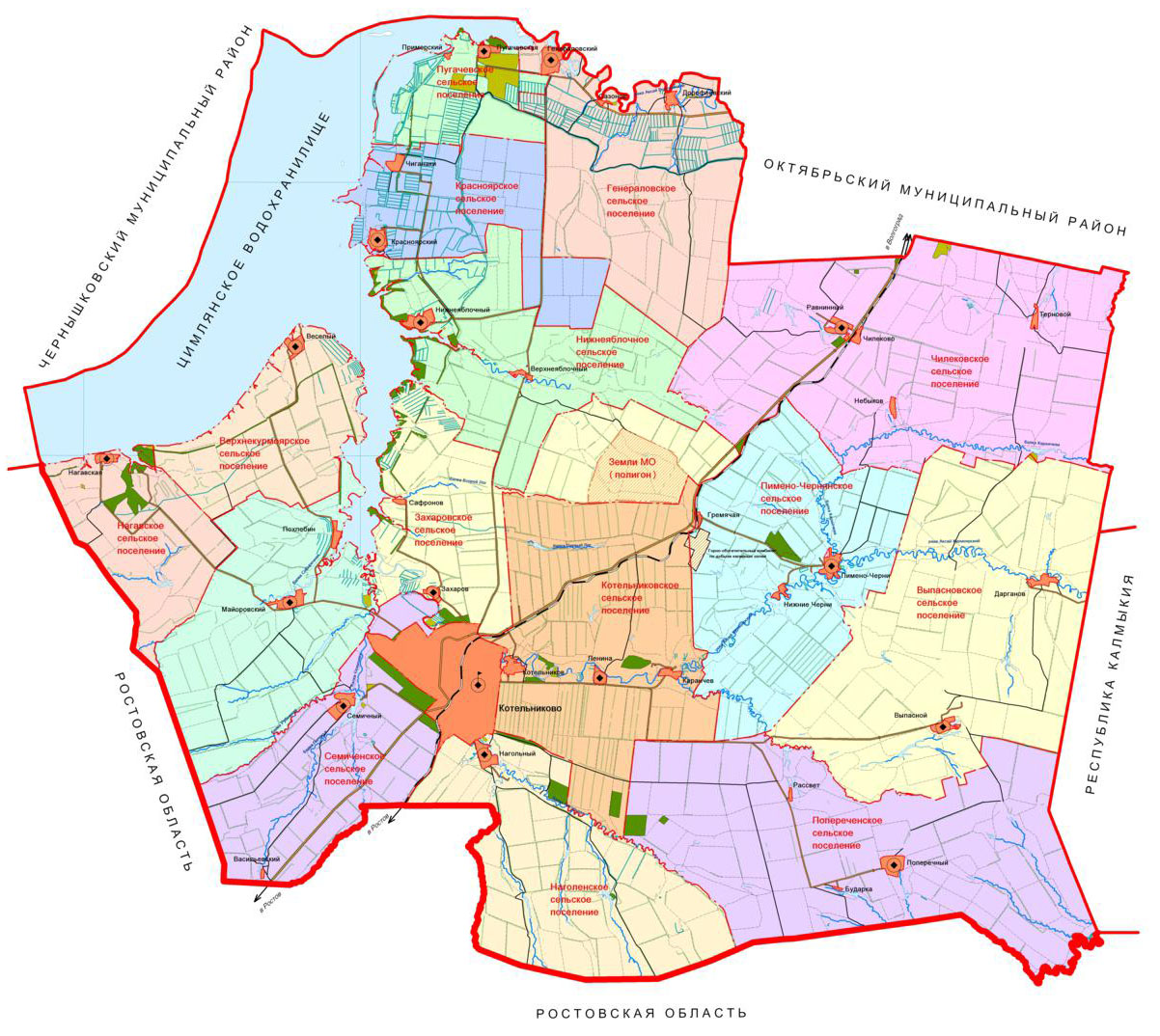 Котельниковский муниципальный район (административный центр – г. Котельниково) находится на юге Волгоградской области, граничит с Ростовской областью и республикой Калмыкия; на северо-востоке с Октябрьским районом, на северо-западе - по Цимлянскому водохранилищу с Чернышковским районом.